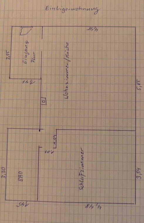 - Ebenerdig teilen sich auf: Hauptwohnung ca. 120 m², 4 Zimmer, Badezimmer etc. und Einliegerwohnung ca. 50 m², 2 Zimmer und Badezimmer.