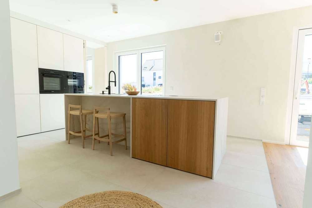 Der offen gestaltete Wohn-, Ess- und Kochbereich bildet das Herzstück des Hauses. Die hochwertige Designküche mit integrierter Sitznische lädt zum gemeinsamen Kochen und Verweilen ein. Ergänzt wird sie durch eine praktische Back-up-Küche. Ein stilvoller Panoramakamin schafft eine behagliche Atmosphäre – besonders an kühleren Tagen. Das angrenzende Arbeitszimmer bietet Platz für ein Homeoffice oder ein gemütliches Spielzimmer.