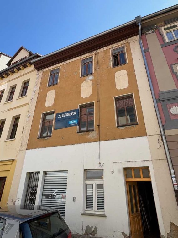 Dieses modernisierungsbedürftige Objekt hat zum Teil noch den Ursprungs-Charme des Mittelalters von der Aufteilung bis hin zu dem auf den alten Stadtmauern von Kahla errichteten Hinterhaus. Auch der Gewölbekeller bietet vom Weinkeller bis zum Partyraum viel Entwicklungspotenzial.