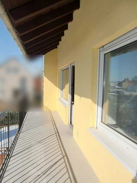 Sonniger großer Balkon. Ein kleines Gartenstück kann gemeinschaftlich mit genutzt werden.