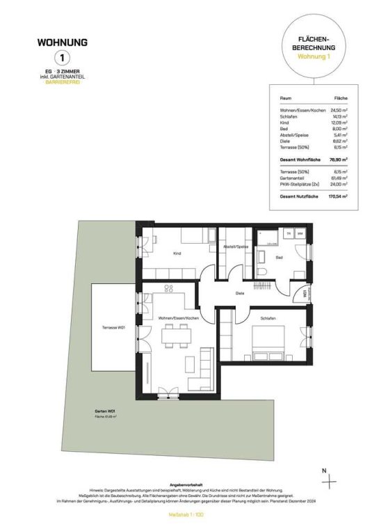 NEUBAU: 3-Zimmer-Wohnung mit Garten im Mehrfamilienbungalow