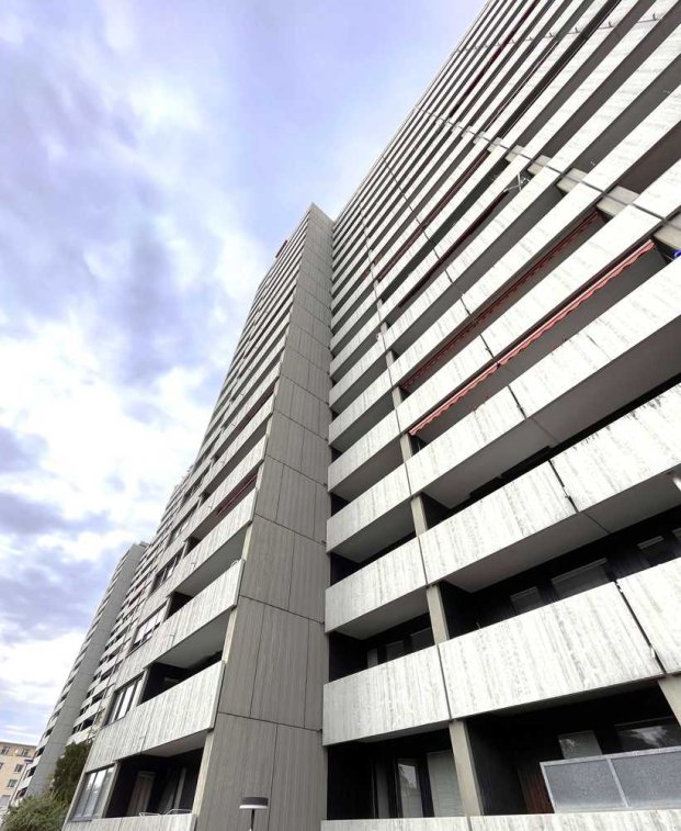 Sie liegt im 5. Stock des Mehrparteienhauses und bietet durch Ostausrichtung einen hervorragend Weitblick über die Weststadt.