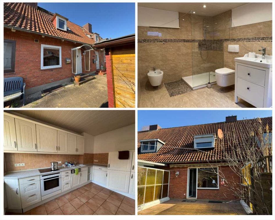 Dieses charmante Reihenmittelhaus überzeugt mit einem durchdachten Grundriss, einer gemütlichen Atmosphäre und einer hervorragenden Lage. Mit einer Wohnfläche von 72,3 m² auf einem gepflegten Grundstück von 111 m² bietet es ausreichend Platz. Schon beim Betreten des Hauses empfängt Sie ein einladender Eingangsbereich. Von hier aus gelangen Sie in die verschiedenen Bereiche des Hauses: die Küche, das Wohnzimmer, den Keller sowie das Obergeschoss. Die helle und gut ausgestattete Küche punktet mit einer Einbauküche und bietet Platz für einen Esstisch. Ein besonderes Highlight ist die Möglichkeit, die Küche und das angrenzende Wohnzimmer miteinander zu verbinden und so einen offenen Wohn-Ess-Bereich zu schaffen. Das Wohnzimmer bildet das Herzstück des Hauses. Mit seiner guten Größe bietet es Raum für gesellige Abende und gemütliche Stunden. Durch die große Fensterfront genießen Sie einen wunderbaren Blick auf die Süd-West Terrasse und den Garten. Die Sonnenterrasse und der gepflegte Garten mit einer kleinen Gartenhütte (für Gartengeräte) laden zu entspannten Stunden im Freien ein. Im Obergeschoss erwarten Sie zwei individuell nutzbare Räume, die sich hervorragend als Schlafzimmer, Kinderzimmer oder Büro eignen. Ein besonderes Plus ist der begehbare Kleiderschrank in einem der Zimmer, der zusätzlichen Stauraum bietet. Ein separates WC im Obergeschoss ergänzt die praktische Aufteilung. Über eine Bodentreppe gelangen Sie auf den isolierten Boden, der weitere Lagermöglichkeiten bietet. Der Kellerbereich überzeugt mit einem großzügigen Raum, der vielseitig genutzt werden kann – sei es als Hobbyraum, Werkstatt oder Lagerfläche. Darüber hinaus befindet sich hier das Hauptbad, das mit WC, Bidet, Dusche und einem Waschmaschinenanschluss keine Wünsche offenlässt. Weitere Lagermöglichkeiten bietet eine weitere Gartenhütte vor dem Haus, die sich ideal für Fahrräder oder andere Gegenstände eignet. Dieses Reihenmittelhaus verbindet Komfort, Funktionalität und Gemütlichkeit in einer attraktiven Umgebung. Überzeugen Sie sich selbst von den vielfältigen Möglichkeiten und vereinbaren Sie noch heute einen Besichtigungstermin. Ihr neues Zuhause wartet auf Sie!