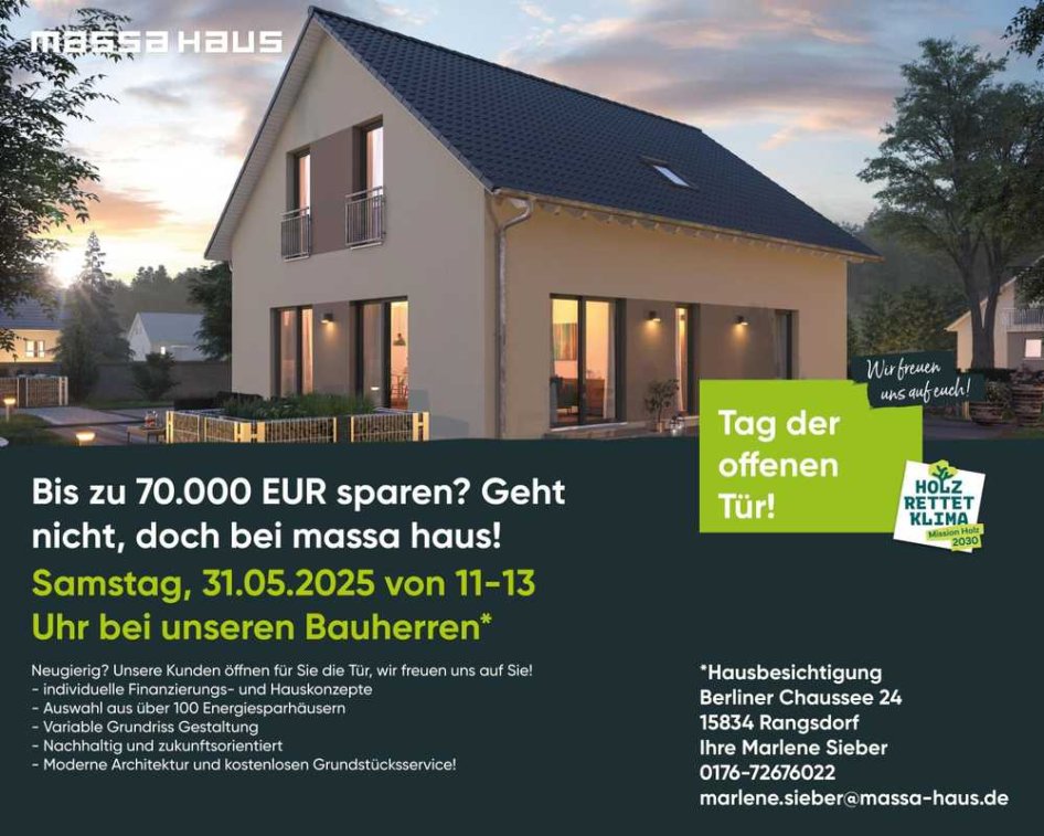 SCHAUTAG BEI BAUFAMILIE VOR ORT!31.5. 11 - 13 Uhr in RANGSDORF,Berliner Chaussee 24