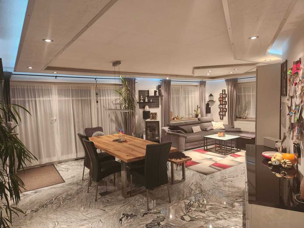 - Moderne Ausstattung: Genießen Sie die neuwertige Einbauküche in Weiß Hochglanz, die nicht nur funktional, sondern auch ein echter Blickfang ist.