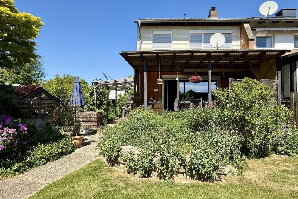 Der Garten ist liebevoll und pflegeleicht angelegt. Hier haben Kinder ausreichend Platz zum spielen. Weiter gibt es ein Gartenhaus das Platz für Gartengeräte und Fahrräder bietet. Die Garage erreichen Sie bequem durch den Garten.
