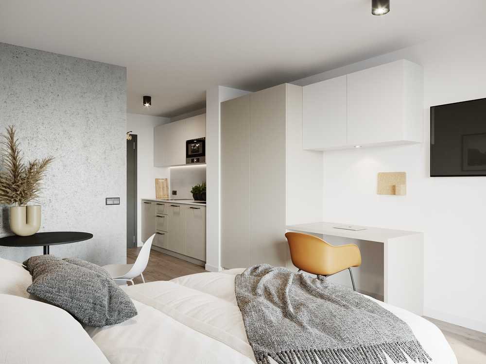uniQ living - next level: In Regensburgs studentischer Ideallage entstehen 91 voll möblierte Lifestyle-Apartments mit hohen Ausstattungsstandards für studentisches Wohnen der nächsten Generation. 44 Apartments davon befinden sich in einem Gebäudetrakt, der nach der Kernsanierung einem KFW-55-EE-Standard entsprechen wird, weitere 47 Apartments werden als „Klimafreundlicher Neubau (KFN)" in der Effizienzstufe 40 errichtet und sind mit einem KFW-Kredit in Höhe von 100.000 EUR förderfähig.