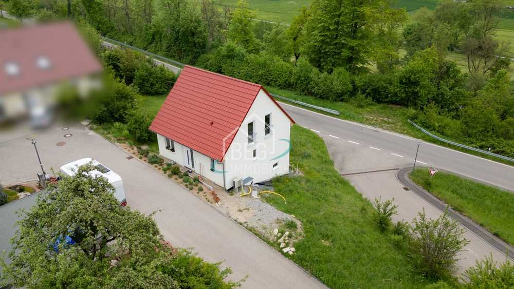 Dieses moderne Einfamilienhaus wurde 2023 in massiver Bauweise errichtet und befindet sich in ruhiger Wohnlage, im Teilort Bächlingen des Luftkurortes Langenburg. Mit ca. 111 m² Wohnfläche und einem großzügigen Untergeschoss bietet es ein komfortables Zuhause für Familien oder Eigennutzer. Bereits bei der Planung wurde großer Wert auf Nachhaltigkeit und Wohnkomfort gelegt. Die massive, energieeffiziente Bauweise, eine Fußbodenheizung in allen Räumen sowie ein dezentrales Lüftungssystem sorgen für ein angenehmes Raumklima. Der hervorragende Energieeffizienzstandard A+ verspricht dauerhaft niedrige Energiekosten. Für ein gesundes Wohnumfeld wurden zudem emissionsarme, ökologische Materialien verwendet.
