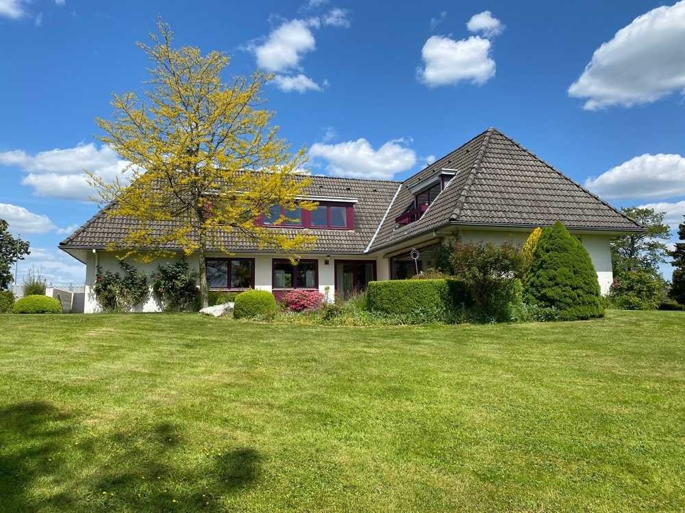 Nur wenige Minuten vom Ortskern Böklund entfernt, auf einer sanften Anhöhe, liegt dieses besondere Einfamilienhaus aus den 70er Jahren – eingebettet in einen ca. 4.100 qm großen, parkähnlichen Garten mit ehrwürdigem Altbaumbestand.