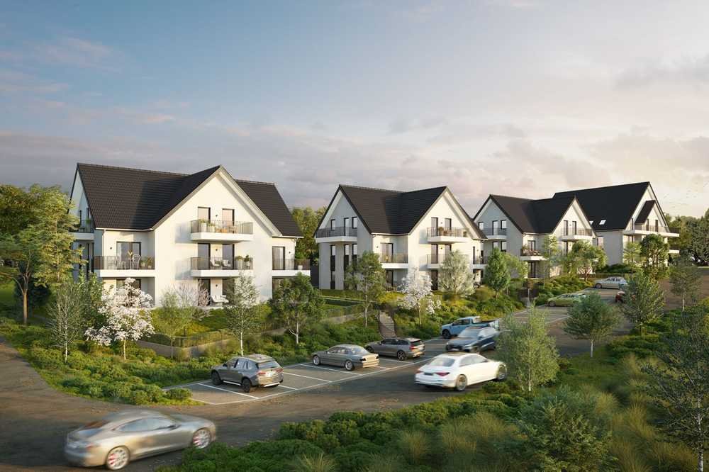 Insgesamt entstehen auf dem großzügigen Gelände mit herrlichem Ausblick 4 Häuser. Ein Haus mit 12 Wohneinheiten und drei Häuser mit jeweils 9 Wohneinheiten. Im ersten Bauabschnitt wird das 12-Familienhaus realisiert. Der Baubeginn erfolgt in Kürze. Die Fertigstellung ist für Herbst 2026 geplant.