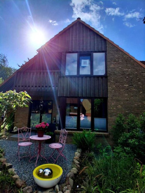 Eine sonnige und eine überdachte Terrasse, sowie der pflegeleichte Garten laden zum Verweilen in der Natur ein.