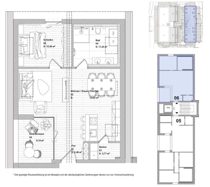 Moderne 2-Zimmer-Wohnung mit überdachter Dachterrasse und luxuriösem Bad