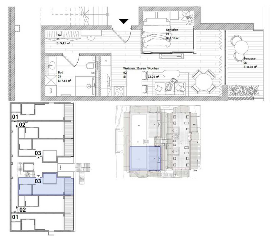 Auf ca. 47 m² Wohnfläche bietet die Wohnung alles, was das Herz begehrt: Das Schlafzimmer ist durch elegante Schiebeelemente vom Wohnbereich getrennt – flexibel und clever gelöst. Bei Bedarf lässt sich der Raum öffnen und als großzügiges Loft genießen oder die Elemente schließen, um sich einen ruhigen Rückzugsort zu schaffen.