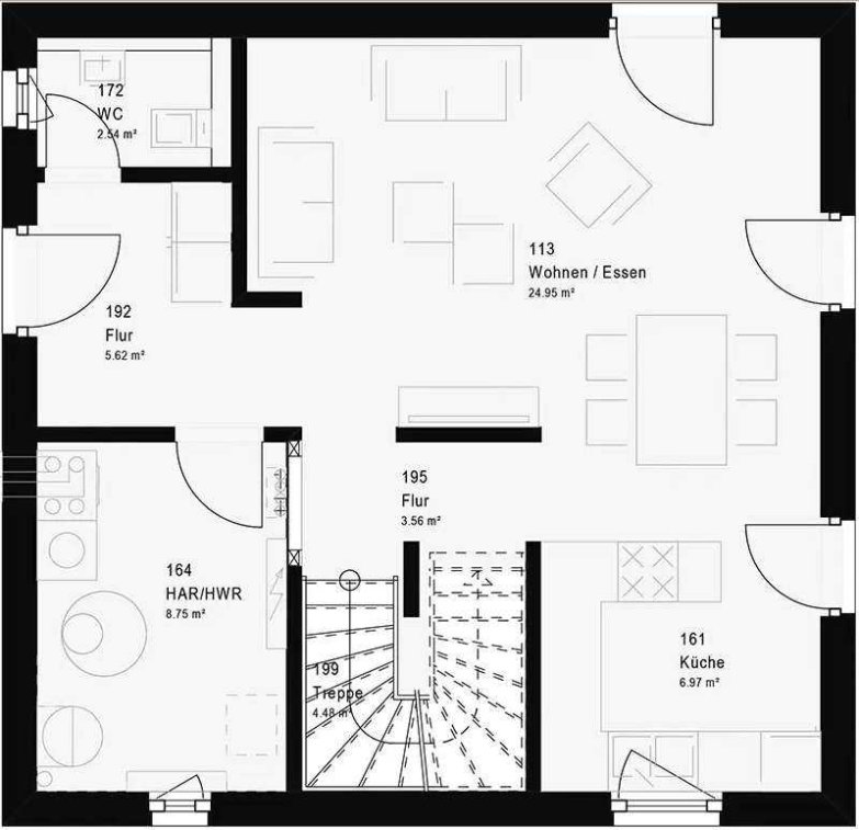 Puristisches Raumwunder auch für kompaktere Grundstücke: Unser Ausbauhaus Trend 11.0S hat zwei Wohnebenen mit einer Nettogrundfläche von insgesamt 112,62 m2. Extrahohe Decken und mehrere bodentiefe Fenster sorgen für Luft und Licht - ein wunderbarer Ort zum Entspannen, Lachen, Leben.