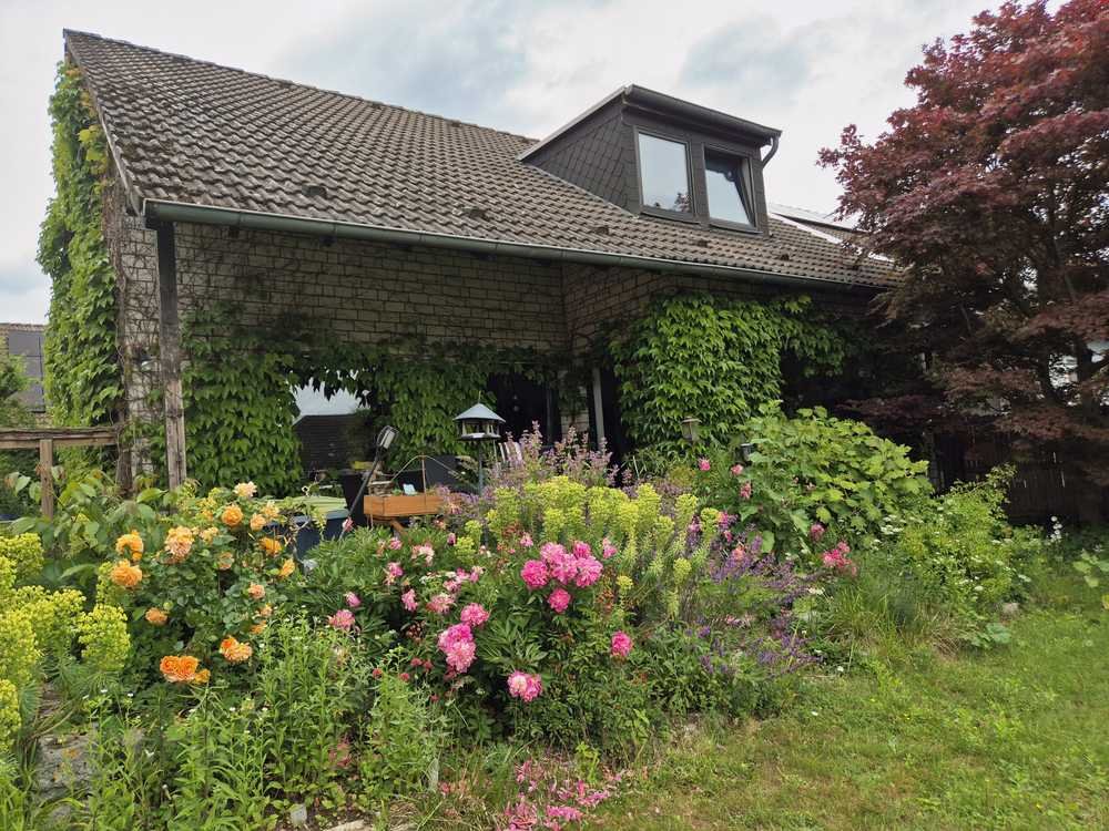 Ein sehr geräumiges kombiniertes Wohn- und Esszimmer (35m²) bietet viel Platz für die ganze Familie, große nach Süden ausgerichtete Fenster vermitteln eine helle und freundliche, einladende Wohnatmosphäre. Von hier aus geht es über eine überdachte Terrasse hinaus in den naturnahen, etwas verwilderten Garten, eine Oase für Bienen und Schmetterlinge.