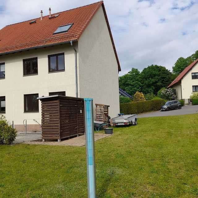 leerstehend, komplett unterkellert, 2-geschossige massive solide Ziegelbau, Grundstück gepflegt, Wiese, überwiegend ebenerdig, im hinteren Bereich zum Nachbarn teilweise mit Hecke abgegrenzt, große Regenwasserzysterne (bereits angeschlossen für Brauchwassernutzung), Kanalanschluss (Trennsystem), 2-3 Stellplätze möglich