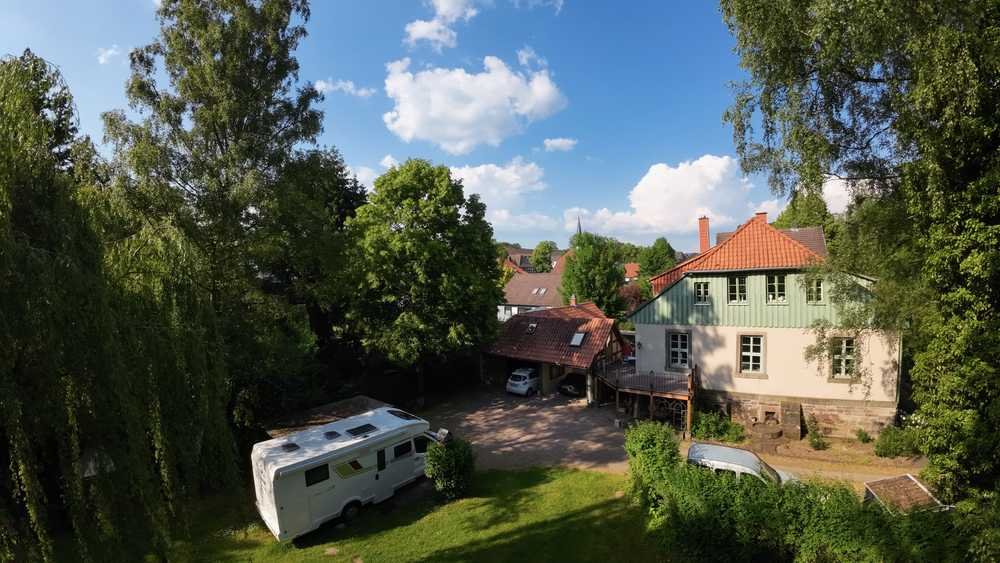 Ein kleines Nebengebäude und der Sandsteinkeller bieten reichlich Platz für Vorräte, Fahrräder, Werkstatt, Tiere oder Hobbys. Auch für Wohnmobil, Kastenwagen, Trecker, ... gibt es ausreichend Parkplatz auf dem Grundstück.