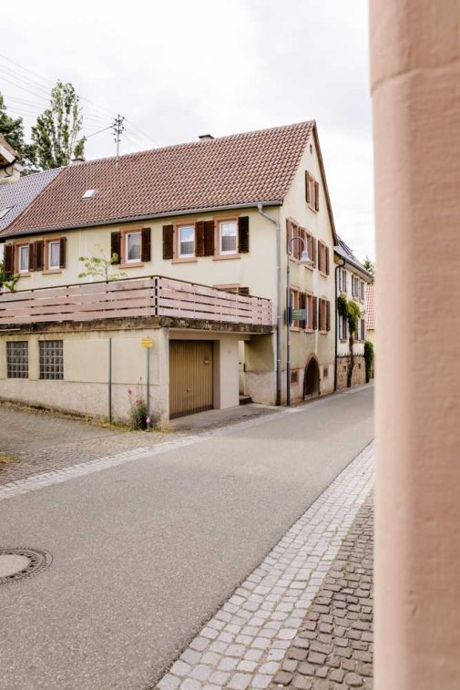 Dieses stattliche Wohnhaus befindet sich im Dorfkern von Burrweiler an der Südlichen Weinstraße in einer Denkmalzone.