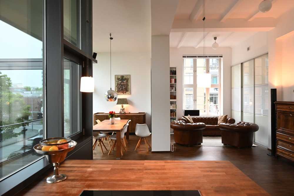 Die Wohnung selbst bietet industriellen Chic mit Loftcharakter,
