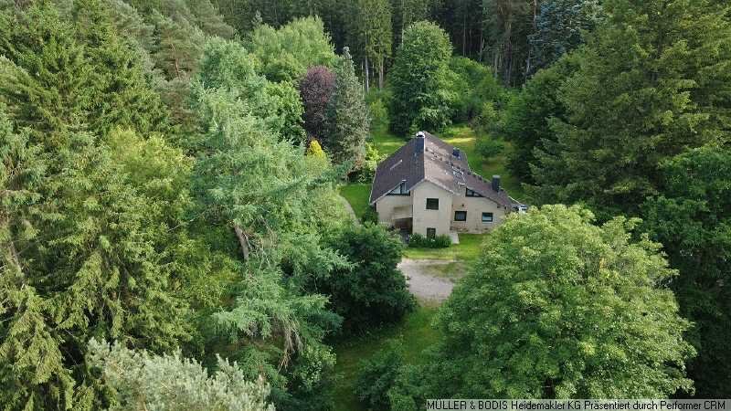Auf einem befestigten Weg entlang der Kleinbahnstrecke zwischen Hannover und Buchholz (Heidebahn) gelangt man nach ca. 1,7 km auf das wunderschöne Waldgrundstück dieses Objektes. Mitten auf dem Flurstück wurde maßgeblich im Jahre 1977 dieses außergewöhnliche Architektenhaus mit einer Gelbklinkerfassade erstellt.