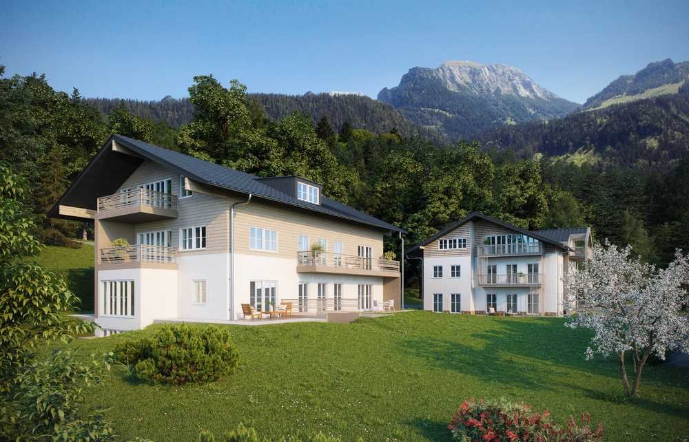 Entdecken Sie die vielen Vorzüge dieser modernen Wohnungen verpackt in schönster bayerischer Architektur! Das besondere Highlight: Jede Wohnung hat einen traumhaften Blick auf die Berchtesgadener Bergwelt. Auf dem ca. 3.300 m² großen Baugrundstück entstehen 22 moderne und individuelle Eigentumswohnungen in einem gelungenem Voralpen Wohnstil. Die Wohnanlage ist in drei Häuser aufgeteilt, mit je folgender Aufteilung: