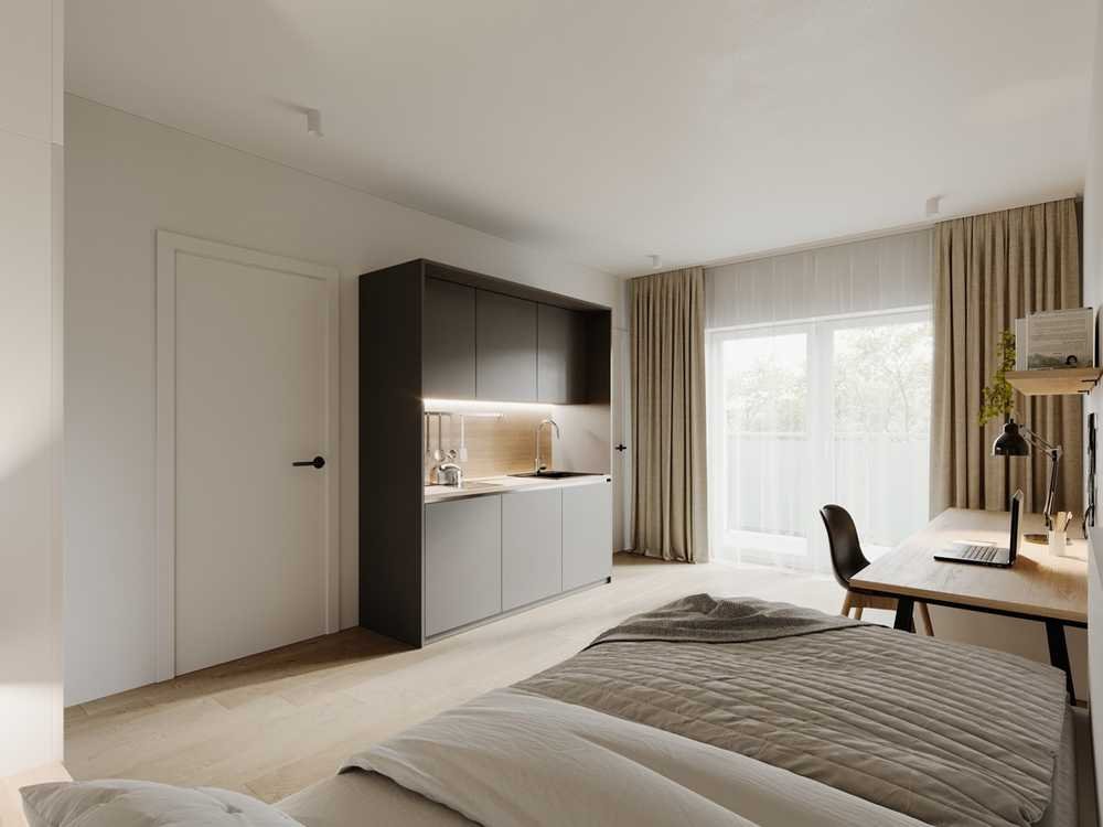 Die 1-Zimmer-Apartments überzeugen durch eine klare, moderne Architektur und eine durchdachte Raumaufteilung, die genau auf die Bedürfnisse von Studierenden zugeschnitten ist. Die hochwertige Ausstattung sowie eine vollmöblierte Übergabe machen die Apartments zu einer zukunftssicheren Investition – ganz ohne zusätzlichen Aufwand.