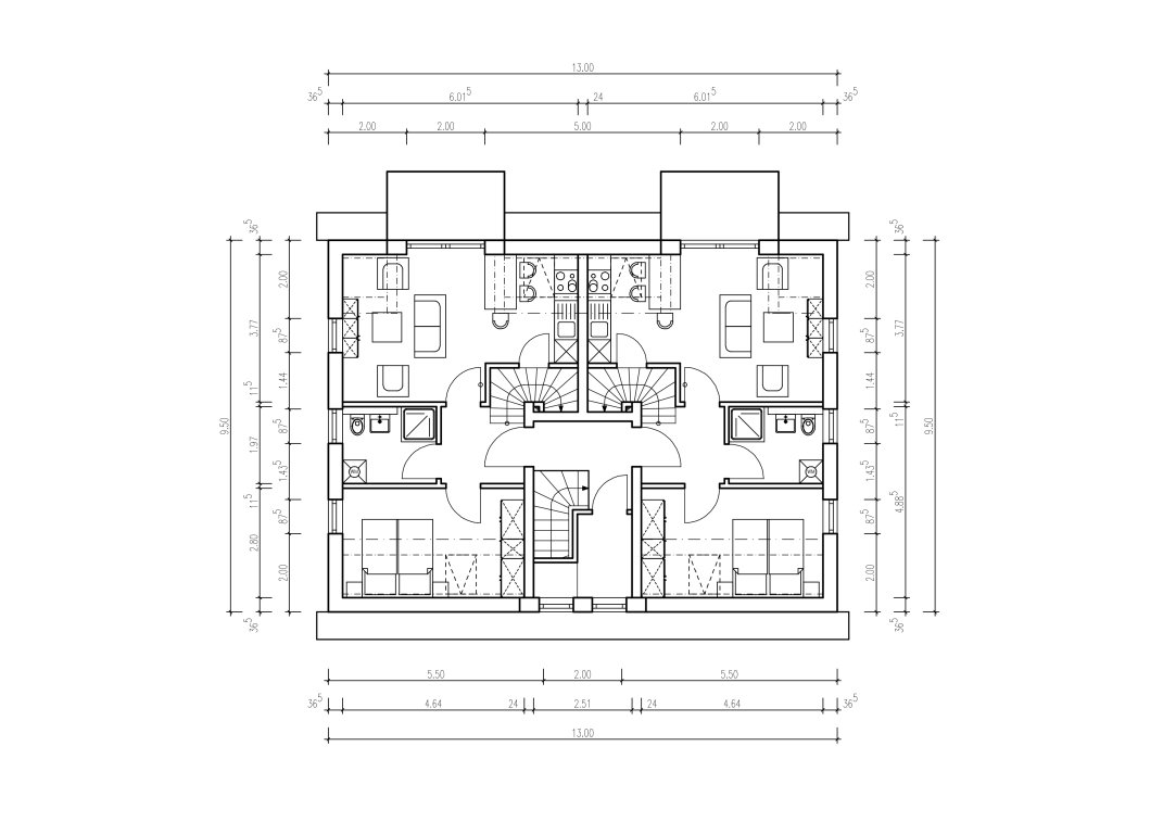 Das Gebäude wird in massiver Bauweise in Porenbeton hergestellt. Die Dacheindeckung erfolgt mit Tondachziegeln. Alle Fenster werden als 3-fach verglaste Elemente ausgeführt. Die Beheizung der Räume erfolgt über eine Fußbodenheizung. Warmwasser wird mittels Durchlauferhitzer bereitgestellt. Als Heizung für das Gebäude wird eine Luftwärmepumpe im Außenbereich installiert. Alle Räume erhalten einen Vinyl-Boden, die Bäder und das Treppenhaus einen Fliesenbelag.