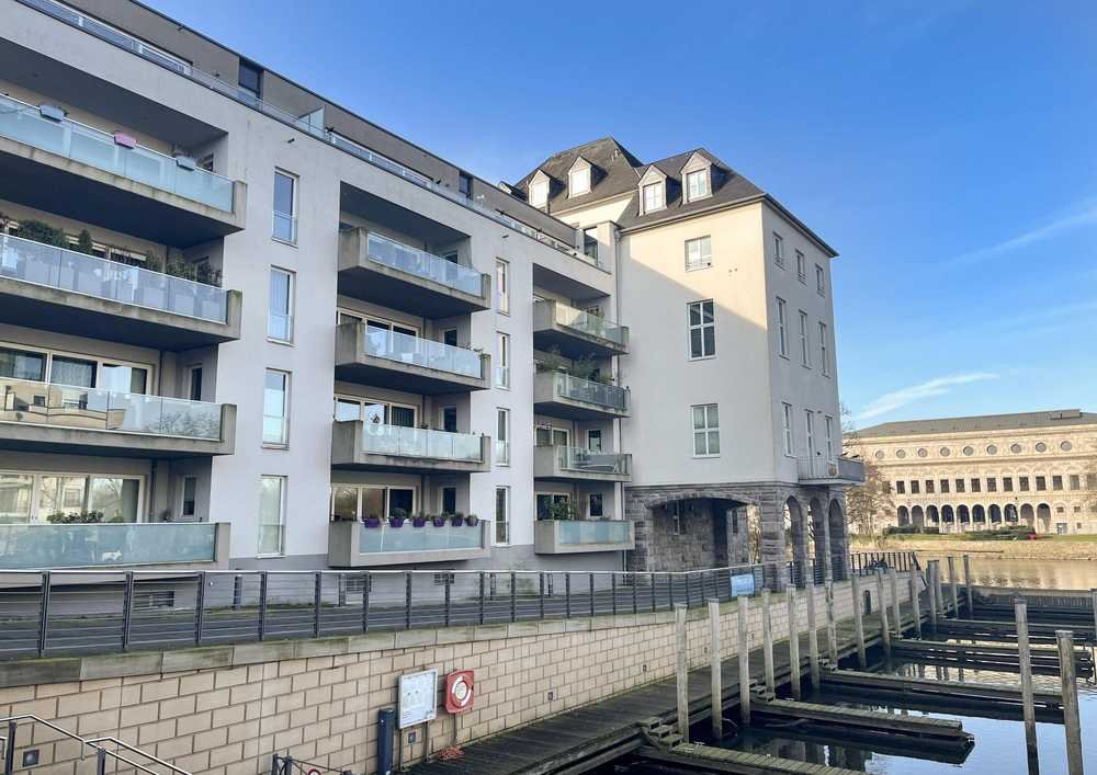 Das Gesamtprojekt besteht aus dem denkmalgeschützten ehemaligen Stadtbad und dem sich daran anschließenden Neubau aus 2008, in dem sich die mit dem Aufzug erreichbare Wohnung im 1. Obergeschoss befindet. Die Wohnung besticht durch ihre großzügige Aufteilung. Den Mittelpunkt der Wohnung bietet der über 50 m² große Wohn-/Ess-/Küchenbereich mit großem Balkon und sehr attraktivem Blick auf die Marina. Darüber hinaus gibt es zwei Schlafräume sowie 2 Bäder und auch einen weiteren Balkon.