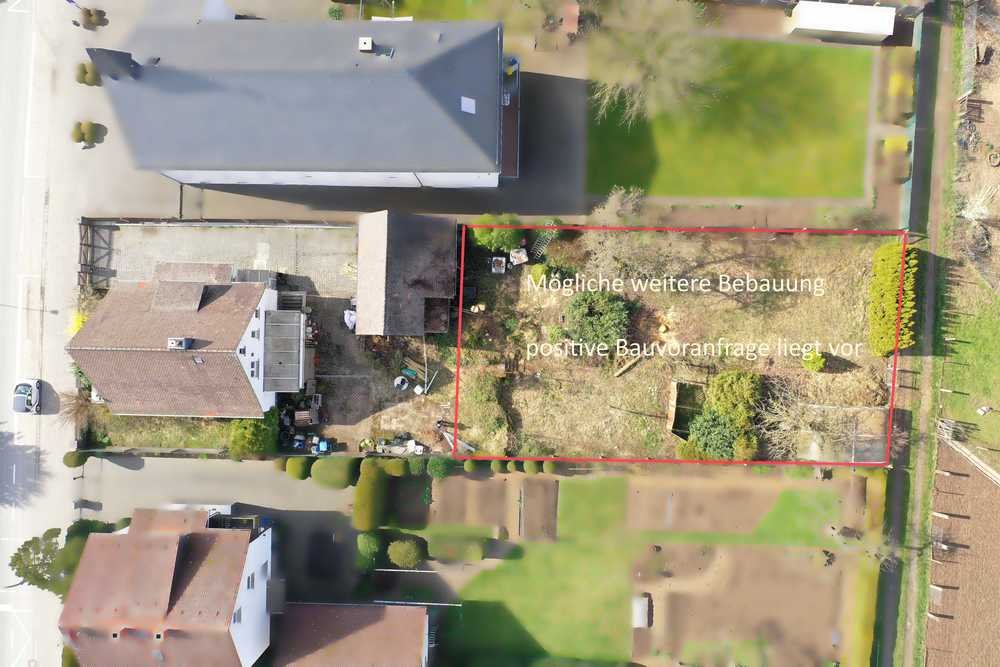 Der hintere Teil des Grundstücks (über 600m²) ist derzeit ein Garten mit Zugang zu dem dahinter laufenden Feldweg.