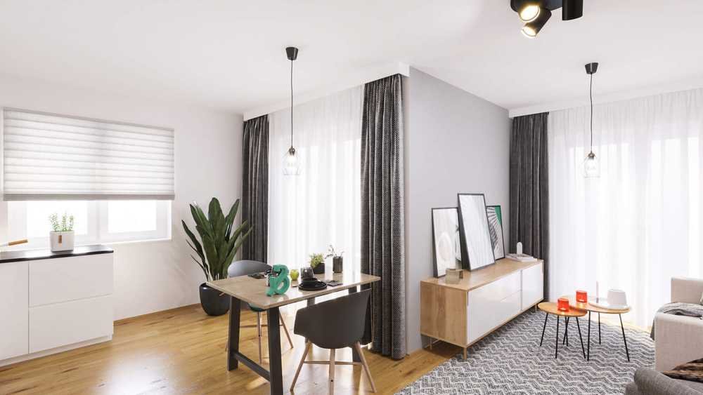Schließlich gelangt man in den einladenden Wohnbereich, der hell erleuchtet wird und die ideale Räumlichkeit für gemeinsame Film- oder Brettspielabende darstellt. Eine integrierte offene Küche lädt hier zu gemeinsamen Kochabenden ein. Der Zugang zum Balkon ermöglicht derweil den Genuss der eigenen kulinarischen Kreationen an der frischen Luft. Hier werden sich Ihre Mieter wohlfühlen.