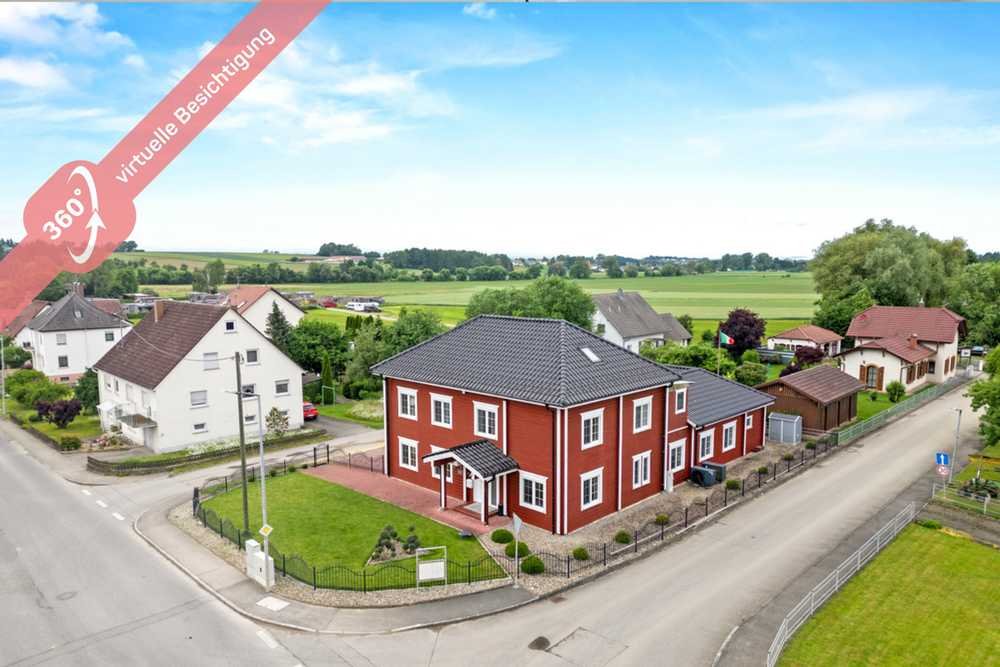 Dieses im Jahr 2015 erbaute Holzhaus(Blockbohlen) besticht durch seine großzügige Wohnfläche von ca. 243 m², verteilt auf drei Etagen, und eine Grundstücksgröße von ca. 769 m². Hinzu kommt eine Fläche von ca. 105 m² Bürofläche, die nach einer Nutzungsänderung auch als Einliegerwohnung dienen kann.