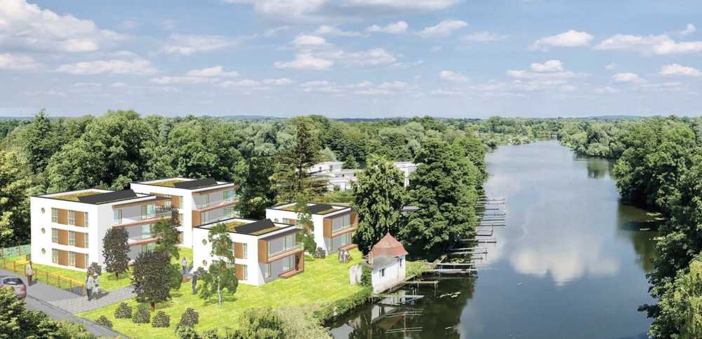 Auf dem ca. 4.200 m2 großem Wassergrundstück entstehen 4 Wohnquartiere mit insgesamt 10 Eigentumswohnungen, welche allesamt durch eine 90 Meter lange Wasserfront und einer traumhaften Südlage bestechen.