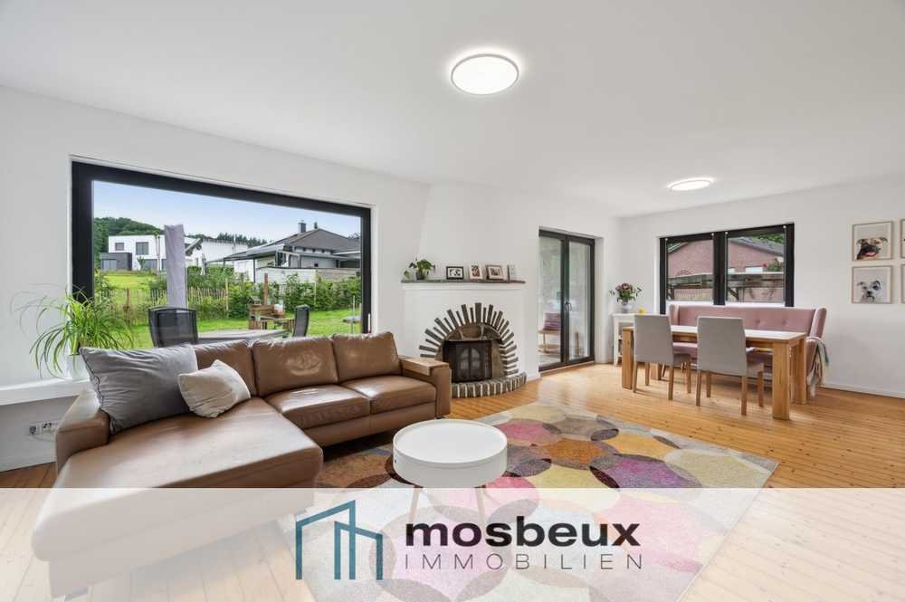Der moderne Flurbereich - von welchem alle Räumlichkeiten abgehen - weckt bereits Neugier. Der Flur, aber auch das Gäste-WC und das Badezimmer vermitteln einen modernen Wohncharakter und liegen zwischen den drei Schlaf- Kinder- oder Arbeitszimmern. Das lichtdurchflutete Wohn- und Esszimmer bietet einen direkten Blick zum Terrassen- und Gartenbereich - die offene Küche bildet eine Einheit zum nahgelegenen Essbereich. Die Auswahl des Bodenbelages und der offene Kamin, runden das gemütliche Wohnerlebnis ab.