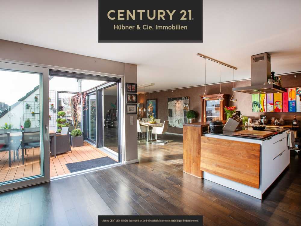 Das Herzstück dieser Wohnung ist der wirklich imposante, offene Wohn- und Essbereich, der sich über ca. 90m² erstreckt. Große, bodentiefe Fensterfronten sorgen für viel Helligkeit und ermöglichen einen Blick hinunter in die Fußgängerzone. Die in den offenen Wohnbereich integrierte moderne, voll ausgestattete Küche wird Sie gewiss begeistern und keine Wünsche offen lassen. Von der stilvollen Kochinsel mit dem langem Tresen, der genügend Platz für Ihre Gäste bietet, bis zum großen Kochfeld, den hochwertigen Einbaugeräten und dem integrierten Weinkühlschrank bietet sie Ihnen außerdem auch reichlich Stauraum. Diese Küche ist wahrlich ein Traum für jeden Hobby- und Profikoch. Ein weiteres Highlight ist hier auch die innenliegende, separate Dachterrasse, die Sie vom Wohnbereich aus betreten. Hier lassen sich gemütliche, ruhige Stunden im Freien genießen. Ein modernes Gäste-WC wird nicht nur Ihren Gästen gefallen.