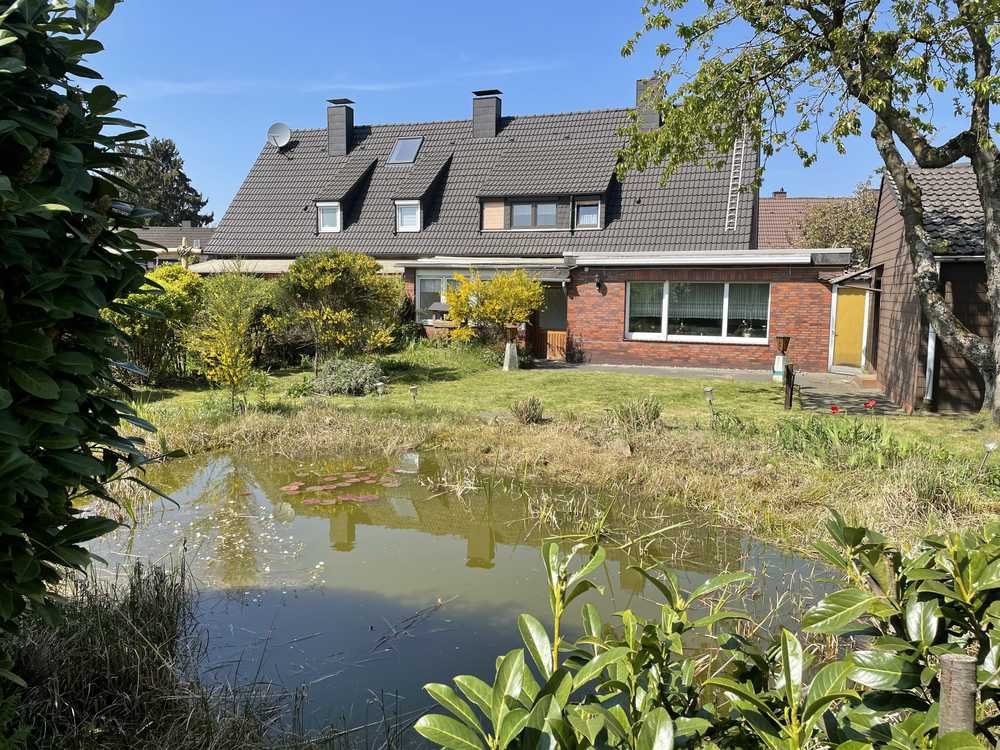 Die Doppelhaushälfte im Süden von Castrop-Rauxel liegt ruhig in einer Sackgasse und verfügt über ein fast 800 qm großes Grundstück mit großem Teich und altem Baumbestand. Sie kann als Ein- oder Zweifamilienhaus genutzt werden.