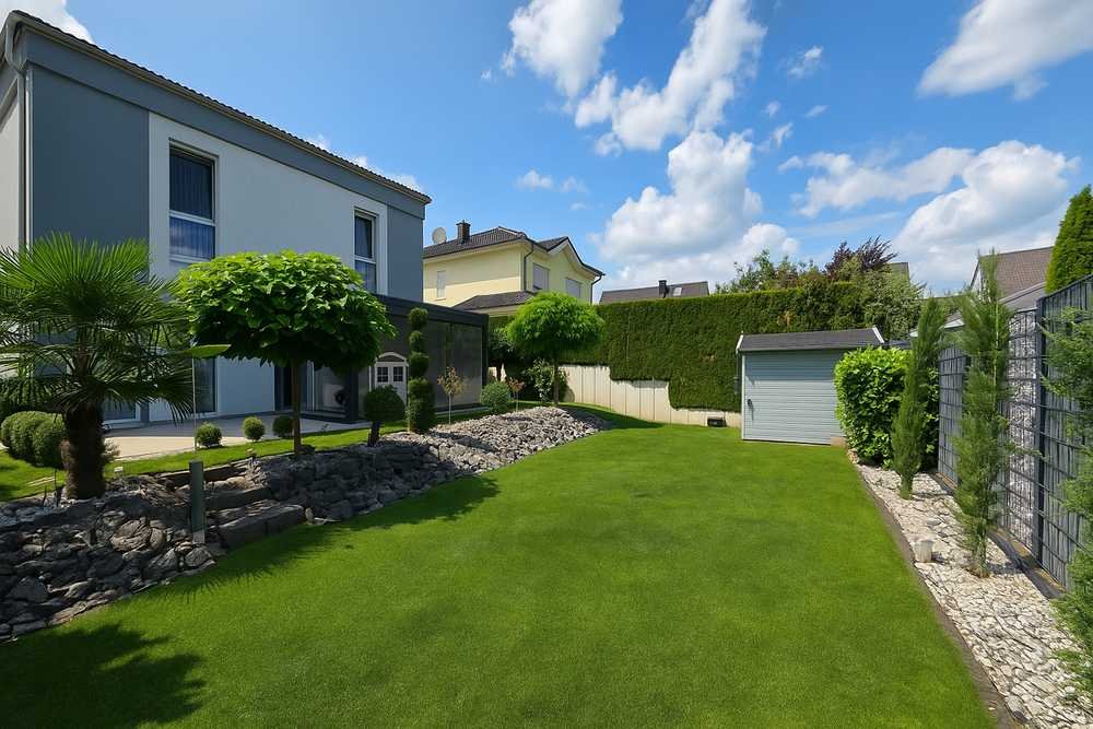 Der großzügige Wohn- und Essbereich bildet das Herzstück des Hauses. Von hier aus gelangt man direkt in den Wintergarten sowie auf die sonnige Terrasse – perfekt für entspannte Stunden mit Familie und Freunden. Der private, hochwertig angelegte Garten lädt zum Spielen, Gärtnern oder Verweilen ein und verfügt zusätzlich über eine praktische Gartenhütte.