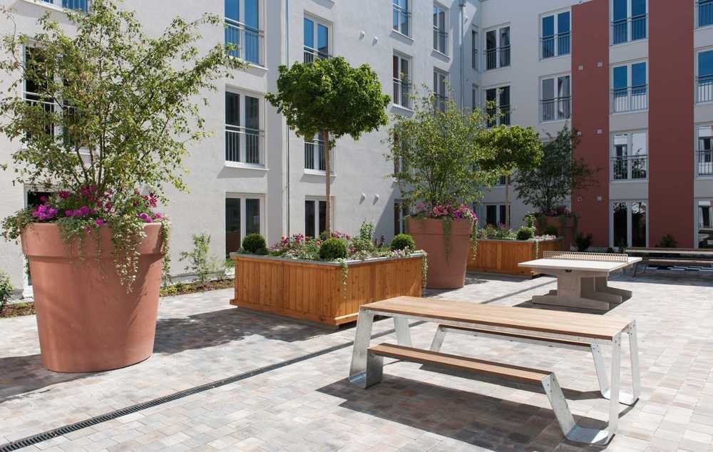 Das Doppelappartement bietet Platz für maximal 2 Personen. Es ist komplett möbliert mit 2 Betten, 2 Kleiderschränken, 2 Sideboards, 2 Schreibtischen mit Stuhl, einer Garderobe und einer Küchenzeile. Natürlich kann das Appartement auch an eine Person vermietet werden. Es ist ruhig gelegen zum Innenhof des Gebäudes. Zudem stehen den Bewohnern diverse Gemeinschaftsräume zur Verfügung. Ein großer Partyraum im Keller, 2 Gemeinschaftsräume in jeder Etage und ein Fitnessraum. Waschmaschinen und Trockner stehen in den beiden Waschräumen zur Verfügung. Ein sehr großer Fahrradraum in der Tiefgarage ist natürlich auch vorhanden.
