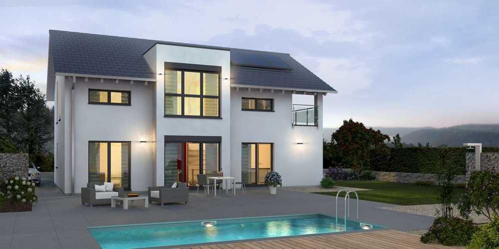 Prestige 2 besticht ebenfalls durch ein üppiges Raumangebot. In dieser Variante wurde entgegen Prestige 1 auf die integrierte Terrasse verzichtet - zugunsten einer kompakteren Raumaufteilung des Erdgeschosses. Wohn-/Essbereich und Küche umfassen hier ca. 56 qm und wirken durch die zahlreichen Fenstertüren sehr weitläufig. Im Obergeschoss entspricht die Raumaufteilung fast komplett der von Prestige 1, allein das Treppenhaus und das Duschbad sind neu angeordnet. Neben den drei Schlafzimmern, eines davon mit Ankleide und eigenem Badezimmer, steht auch ein Balkon zur Verfügung.