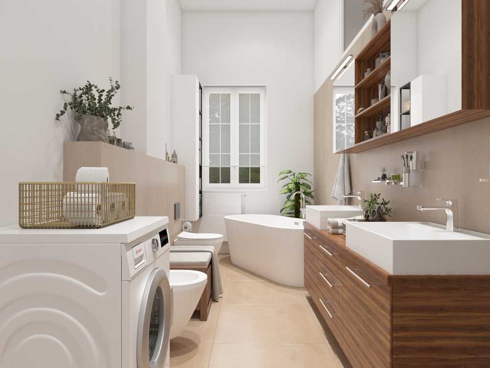 Besonders ansprechend ist das großzügige Badezimmer: Ausgestattet mit einer freistehenden Badewanne, bodengleicher Dusche, zwei Waschbecken, Bidet, Fenster sowie einem Waschmaschinenanschluss, bietet es zeitgemäßen Komfort und fügt sich harmonisch in das stimmige Gesamtbild der Wohnung ein.