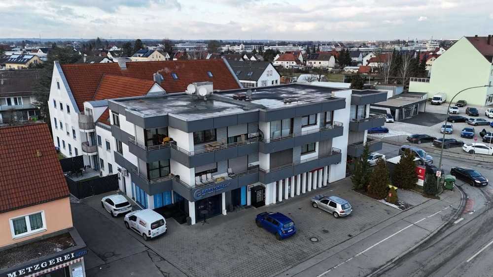 Zum Verkauf steht ein vielseitiges Wohn- und Geschäftshaus auf einem großzügigen Grundstück von 2.040 m² in begehrter Lage von Königsbrunn.