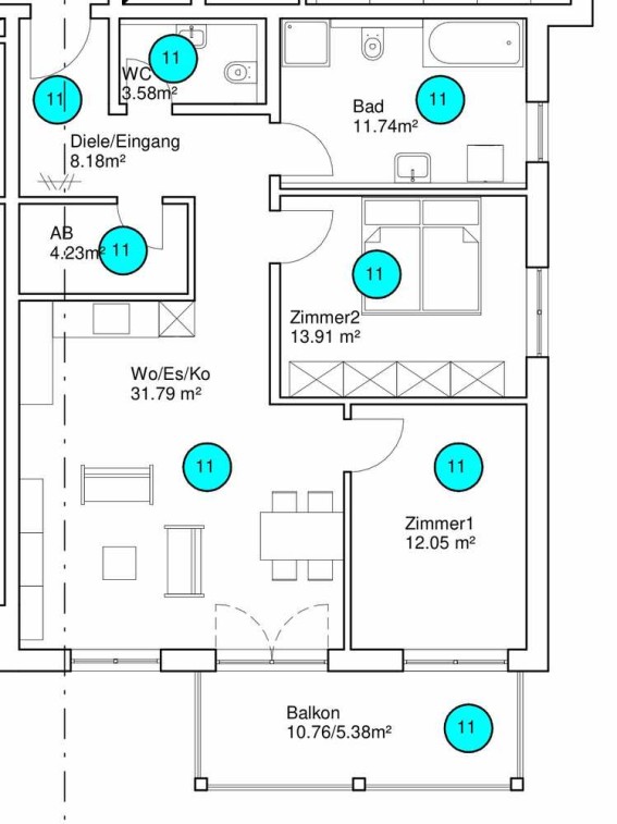 - Jedes Zimmer mit min. 5 Steckdosen ausgestattet