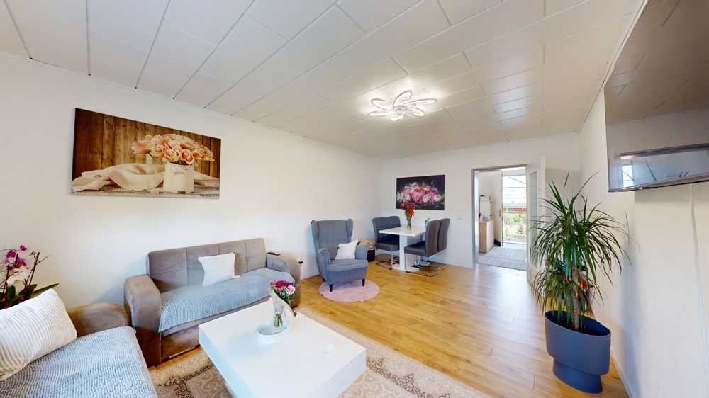 Linkerhand finden Sie das Herzstück der Wohnung: Der großzügige Wohn- und Essbereich, der offen und einladend gestaltet ist. Hier lassen sich sowohl eine gemütliche Sofalandschaft als auch ein großer Esstisch unterbringen. Große Fenster sorgen für viel Tageslicht und einen direkten Zugang zum Balkon, der mit ausreichend Platz für Sitzmöbel eine perfekte Erweiterung des Wohnraums darstellt.