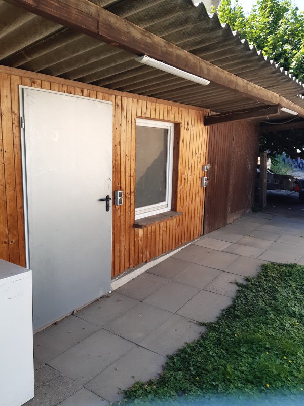Zusätzlich ca. 100 qm Schuppen/Schopf für Fahrräder, Motorrad, Garten-/Werkstatt mit Strom und Licht, 230 und 360 Volt Anschlüsse