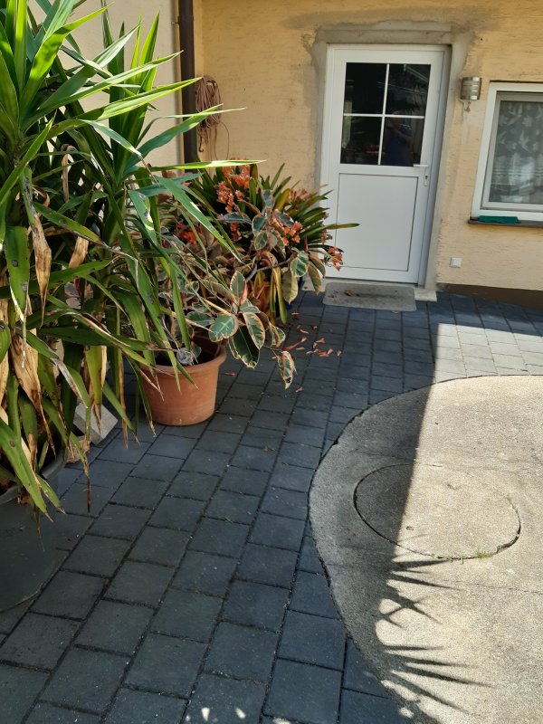 Absolut sonniges und ruhiges Anwesen mit mehreren großen Buchenbäume, Kirsch- und Haselnussbaum, große Regen-Wasserzisterne für Gieß- und Spritzwasser für den Gartenbereich. Ausreichende Wassermenge auch für trockene Sommermonate.