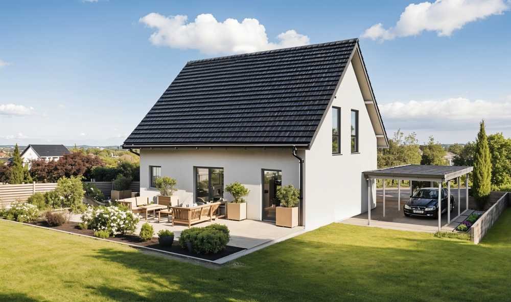 Der angegebene Preis beinhaltet bereits das Grundstück. Das Haus ohne Grundstück ist zum Preis von 349.500 € erhältlich.