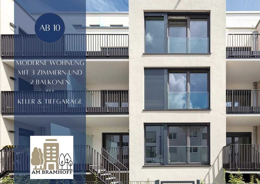 Der Grundriss praktisch, durchdacht und einladend: Zentrale Eingangsdiele, davon abgehend die Räume. Zwei Schlafzimmer, beide mit Balkonzugang. Weiterhin das Komfortbad mit begehbarer Dusche, ein Gäste-WC sowie ein praktischer Hauswirtschafts-Abstellraum. Der geräumige Wohnraum ist als Wohn-Esszimmer mit (halb)offenen Kochbereich ausgestaltet und verfügt über ein großes Fensterelement zum Bramhoff hin sowie einen Balkonzugang.