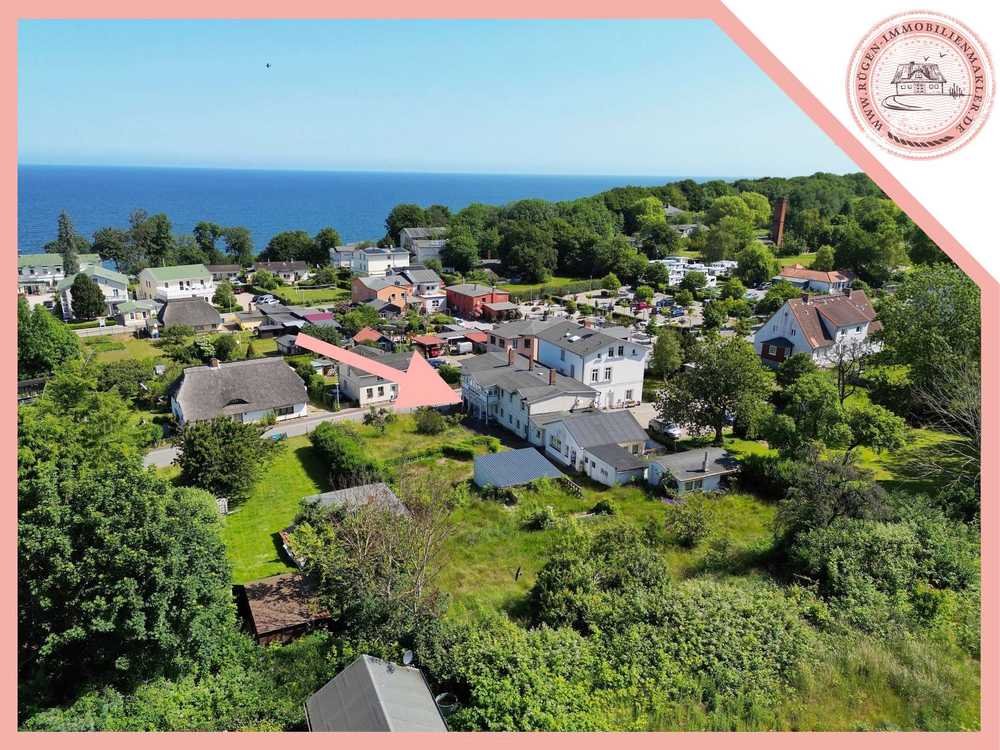Das sanierungsbedürftige Hauptgebäude – ein echtes Zeitzeugnis – verfügt über eine Wohnfläche von ca. 250 m² und ist teilweise unterkellert. Vom Balkon des Gebäudes kann man einen unverbauten Fernblick bis hin zum Kap Arkona genießen. Direkt angeschlossen ist ein Anbau, der in etwa ein Grundfläche von ca. 100 m² bietet und zusätzliche Gestaltungsspielräume eröffnet.