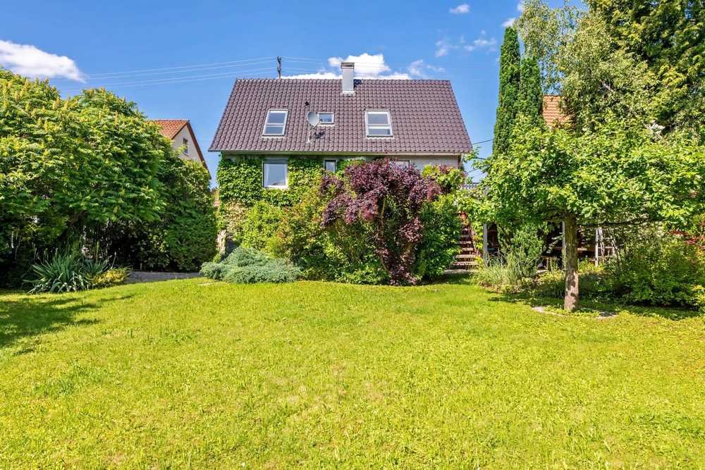 Das Haus steht auf einem sonnigen, gepflegten Grundstück. Der große Garten ist ein echtes Highlight – mit altem Baumbestand, Blumenbeeten, Rasenflächen und viel Privatsphäre. Zwei Terrassen bieten Ihnen zu jeder Tageszeit einen idealen Rückzugsort im Grünen.