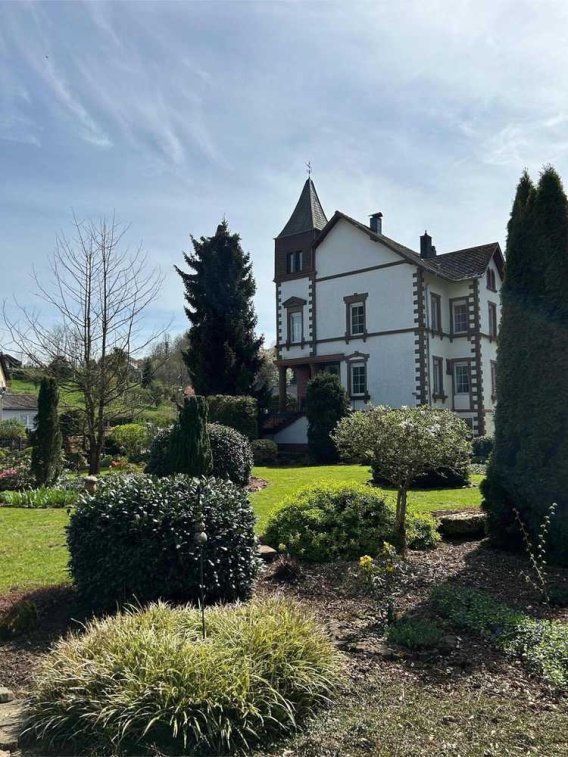 Das Grundstück ist zur Straßenseite voll eingezäunt, ausgenommen der Bereich der Garagen.Ein märchenhaftes Gebäude mit Sandsteinsäulen und Sandstein umrandeten Fenstern empfängt Sie in einem wunderbar gepflegten, parkähnlichen Grundstück mit einer Gesamtgröße von fast 2.500 m² Fläche mit Blick auf die Burg . Zusammenfassend ist diese liebevoll gestaltete Immobilie also ein Traum für Jedermann.