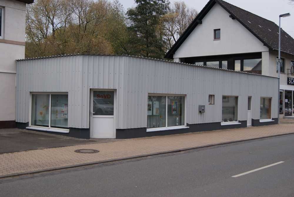 Flachgebäude in Delligsen direkt an der Hauptstraße, Grundstück 171qm, Gebäude 89qm. das Gebäude hat zwei zusammenhängende Räume mit 42qm, die durch Schiebetüren getrennt sind. 1 separater Raum mit ca 37qm, der restauriert werden muss. Getrennt sind die Räumlichkeiten durch eine gemeinsame Nasszelle, bestehend aus einer Küche 8qm und einem WC mit Waschbecken. Hinter dem Gebäude befindet sich eine teilüberdachte Terasse. Das Gebäude wurde 2013 innen und außen hergerichtet, geheizt wird elektrisch. Die zusammenhängenden Räume sind zur Zeit vermietet.